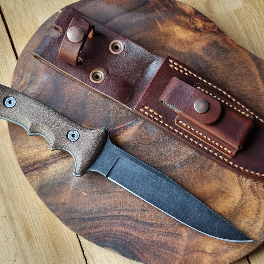 Every knife is paired with a rigorously designed, hand-stitched full grain leather sheath. Traditional saddle stitching, durable materials, and period-correct finishes ensure each sheath matches the quality of the blade it carries.