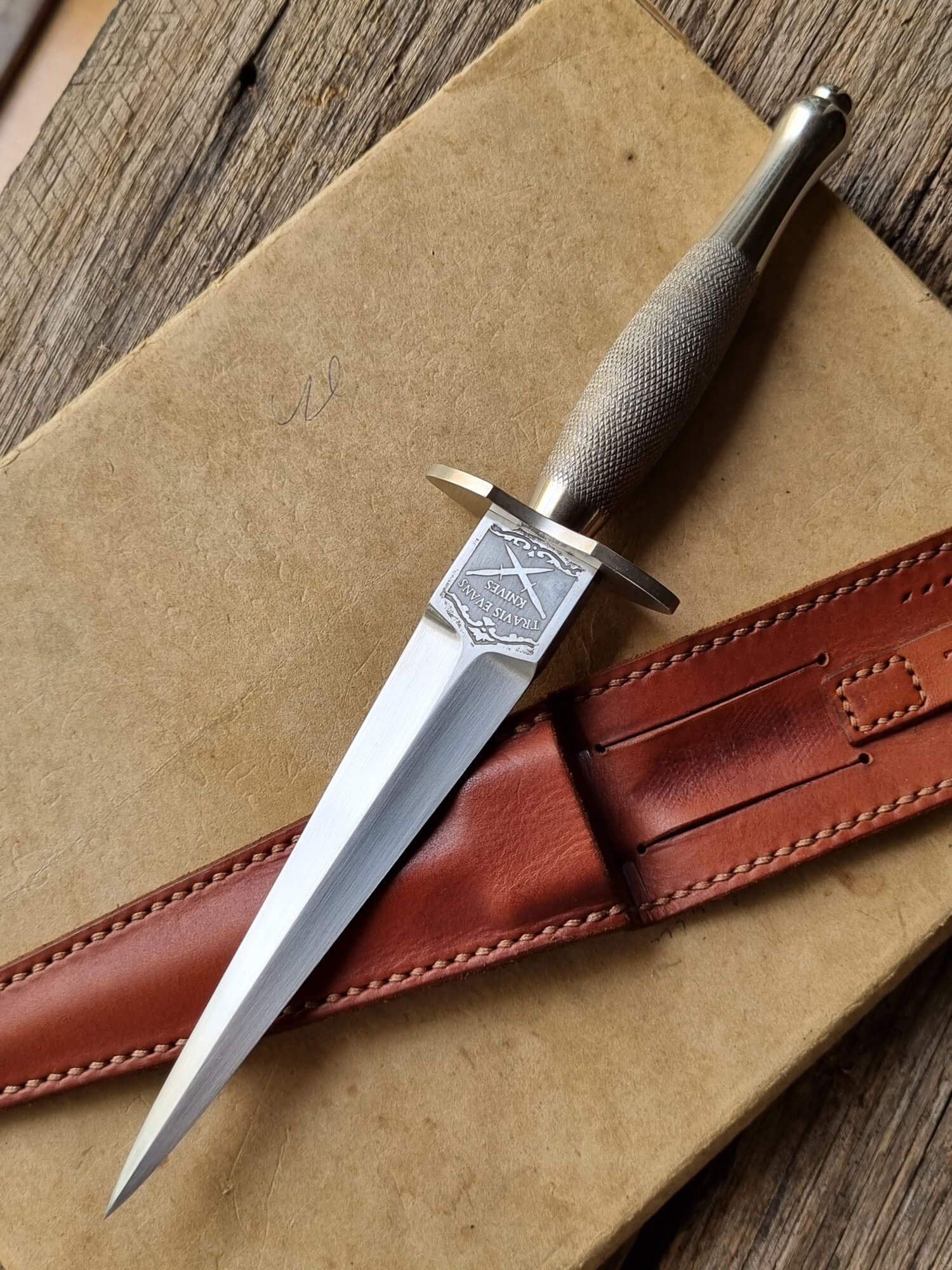 Solid construction with quality materials, TEK Agent Daggers are carefully built by hand and come in several variants and sheath types. Although not originally made with etchings, these re-creations have either a front and back etching or TEK maker’s mark. Each knife design blends ergonomics, balance and function, staying true to the F-S Fighting Knife.